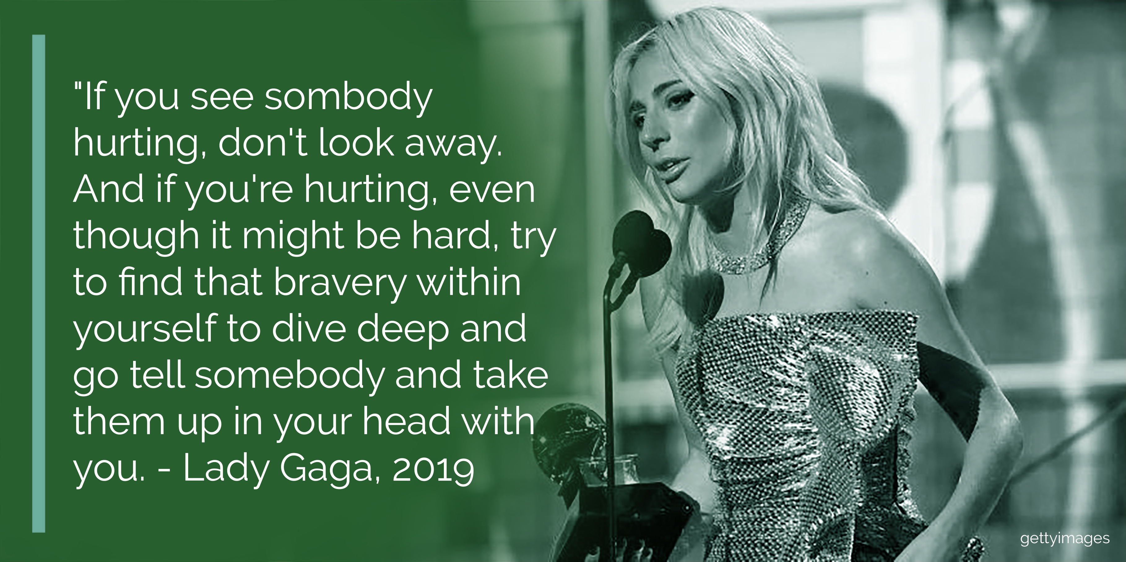 Lady Gaga, a surviior herself, has been vocal about her personal journey with mental health ad living with PTSD as a sexual assault survivor to help combat the stigma.