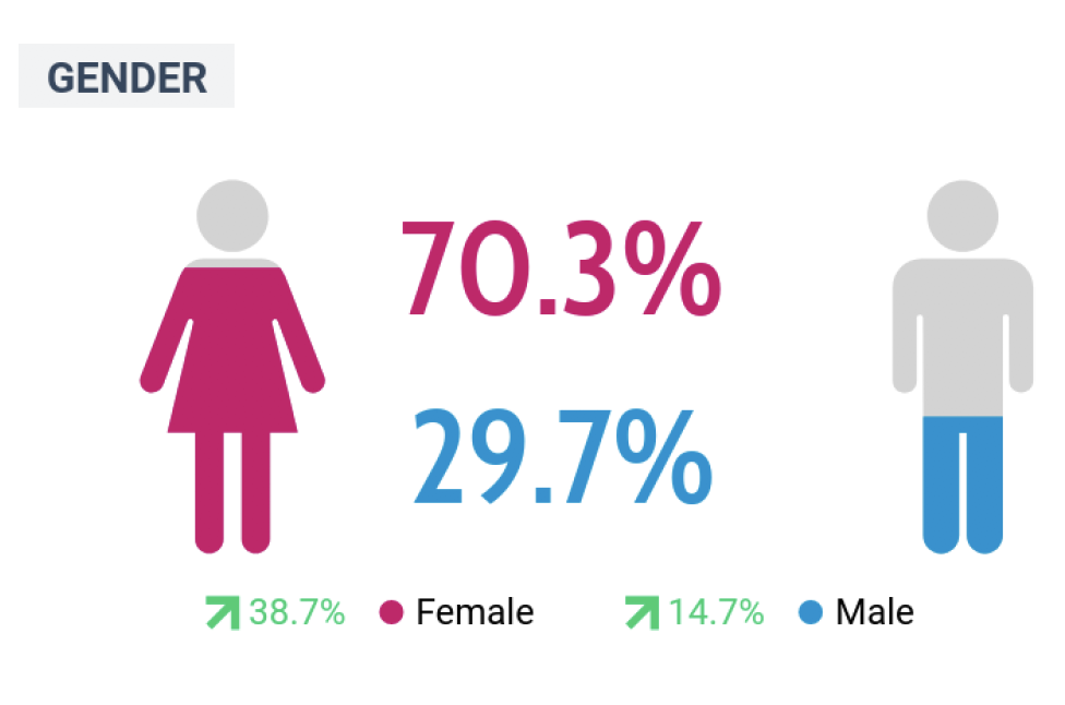 "Looking at the data, the conversation that has taken place over the past week indicates that females are greatly more engaged in conversations surrounding the To Write Love on Her Arms brand with over half of the conversation, 70.3.% leaving the males with 29.7%.